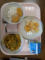 昨日の給食はカレーライスにフルーツヨーグルト。カレーは最高ですね。