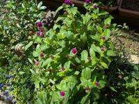 今日の花は千日紅です。千日紅の名前は、「1000日間(長い間)花を咲かせる植物」ということに由来する説もあるそうです。花言葉は「不朽」「永遠の愛」だそうです。