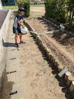 今日は朝から作業。梅雨の晴れ間。グラウンドでは、教務主任の先生がサッカーゴールの位置を杭で固定してくださいました。学校では毎月安全点検をしていて、課題として上がったことを自分たちで対応したり、業者さんに依頼したりして子どもたちの安全な生活を支えています。私も今日はPainterでした。