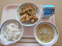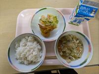 今日の給食は、かみかみゴボウ、もずくスープです。おいしく頂きました。
