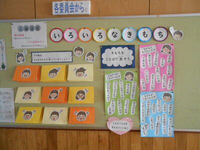 早速、保健室横の掲示板に保健室の先生が下の「いろいろな気持ち」と言う掲示とあわせて、子どもたちに啓発してくれています。
