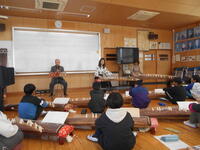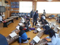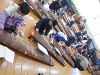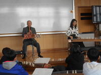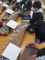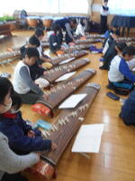 今日の午後と明日の午前中に全学年を対象に「和楽器の魅力 琴鑑賞&演奏体験」を実施します(した)。