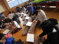老人会の皆さんが餅焼き網の作成を子どもたちに教えてくださいました。