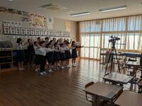 さて、朝の6年生教室は、苓北町制70周年記念式典用のPVの撮影です。今回は、4つの小学校の6年生が出演するそうです。笑顔がステキな6年生でした。