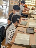 2年生は二人で1つのタブレット端末を使って考え中です。