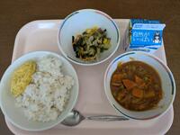 今日の給食は、海藻サラダ、ハヤシライス、ほうれん草オムレツです。おいしくいただきました。