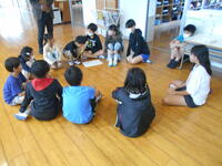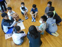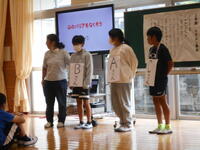 その後企画委員会の皆さんが、子どもたちに日頃よくありそうな場面演技を行ってくれ、その場面演技をもとに、「心のバリアフリー」「平等」「公平」について班で話し合いました。低学年から高学年まで、一緒に考えるのですが5・6年の皆さんが全員の考えや思いをしっかり聞き出していました。