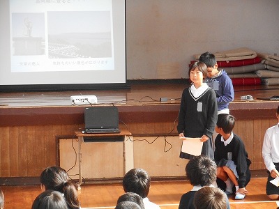 17日の郡市音楽会に出場する6年生が合唱を披露しました。ふるさと、未来への賛歌の2曲です。ふるさと、そして支えてくれる周りの人への感謝の気もち、ともに過ごしてきた友へのエールを込めて歌いました。歌声、表情からその思いが伝わってきました。心があったかくなります。子どもたちも聞き入っており、たくさんの感想を発表しました。