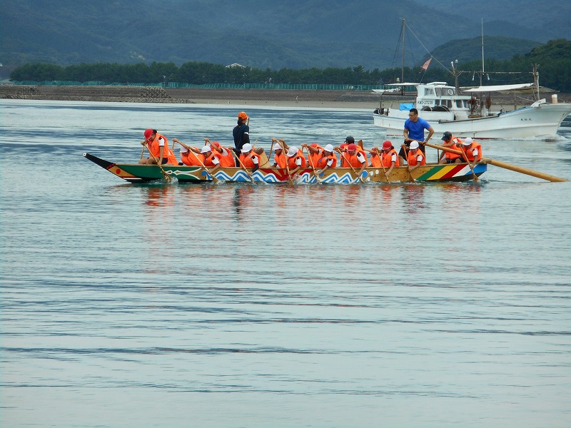 プールで練習した櫂のリズムを思い出して練習に臨みました。蒸し暑い中でしたがみんながんばり櫂のリズムもよく合っていたようです。大会が楽しみです。