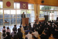 「新しい年を迎えました。それぞれ新しい1年間を迎え、2026年はこんなことをがんばろうという抱負を皆さん持っていることと思います。その抱負を大切にしてほしいと思います。3学期は、50日間と1番短い学期ですが、これまでの1・2学期の学びや体験をまとめる大事な学期であり、同時に、みなさん一人一人の心に残る思い出をたくさんつくる学期でもあります。