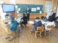 4年生は社会科。地域の伝統工業について学びます。担任の先生方内田皿山焼に行って取材したインタビュー動画を見て、小代焼と比べながら考えていきます。担任の先生の準備が素晴らしいです。