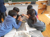 3年生理科はものの重さの秘密を探ります。アルミニュウム箔の広げたままだったり、ちぎったり、丸めたりして重さがどう変わるか?