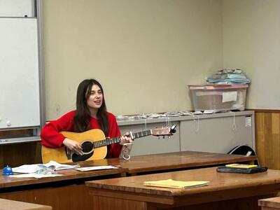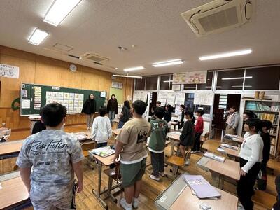 5時間目は、6年生の授業でした。まず、GTである娘さんに今まで学習してきたことを一人ずつ英語で説明します。その後、GTにどんなことを質問するか友だちと話し合い、いろいろなことをGTから聞き出していたようです。最後は、ミニライブ。澄んだきれいな歌声にみんな聞き入っていました。