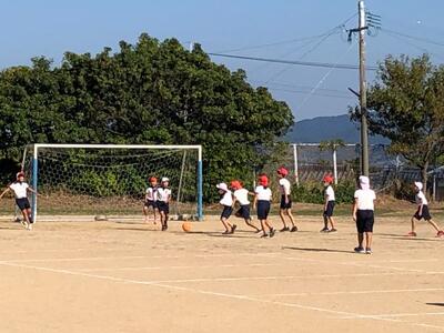 運動場では、スポーツクラブが活動していました。まずは、サッカーから・・・学年や男女関係なく一生懸命ボールを追いかけていました。後半は、ソフトボールを楽しみました。天気もよく、気持ちのよい汗をかいたことでしょう。