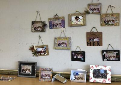 家庭科室では、科学・物づくりクラブが活動していました。今回は2時間かけてフォトフレーム作りに挑戦です。土台となる段ボールや箱などを切り取り、各自家からもってきたビーズやドライフラワーなど飾りを付けていきます。完成した作品は家庭科室の後ろの掲示板に・・・素敵なフォトフレームばかりですね。