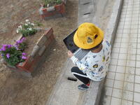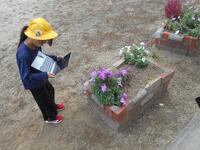 1年生は、生活科の学習です。タブレット端末を使って、学校にある花や植物をパチリ♪。