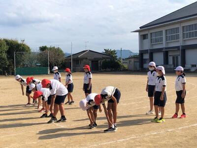 明日は、苓北部会陸上記録会です。今日は、最後の練習が運動場で行われていました。まずは、ウォーミングアップ。