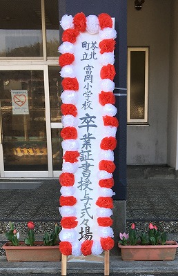 準備の時間だけでなく、その前から動いていました。5年生は朝から体育館の拭き掃除。1年はプランター運び。準備の時間は3~5年でしたが低学年も協力しました。全児童が「感動の卒業式」に向けて動いていたのです。