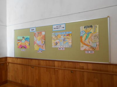 日曜日の授業参観の時にぜひ見ていただければと思います。ホール、東側階段踊り場、東側2階階段、放送室前に分散して掲示しています。