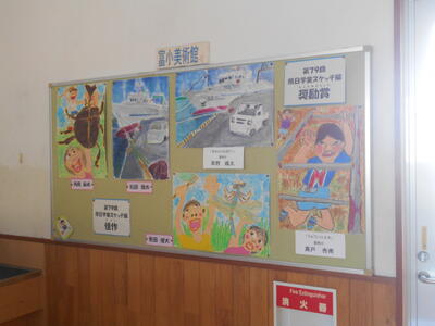 さて、本校の教員業務支援員の先生が、熊日学童スケッチ展の入賞作品を「富小美術館」として掲示してくださいました。いつもありがとうございます。