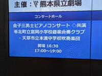 さて、本稿の部活動ではないのですが、5年生6人、6年生6人からなる富岡小器楽合奏クラブが熊本県立劇場でプロピアニスト金子三勇士さんのコンサートに共演しました。これは、11月に行われた熊本県器楽合奏コンクールの出場校で小学校1校、中学校1校に与えられたMIUJI賞です。