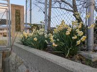 さて、正門の水仙がきれいに咲いています。冬だなあと感じました。