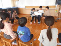 さあ、5時間目の本番です。1年生もニコニコです。いろんな工夫が見られます。抑揚、セリフの言い回し、間の開け方・・・すてきです。