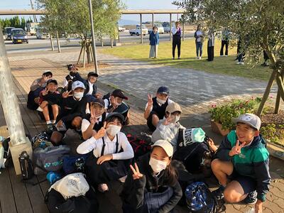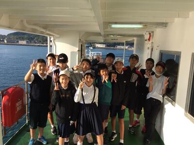 午前7時30分、富小6年生12名全員元気に鬼池港に集合。