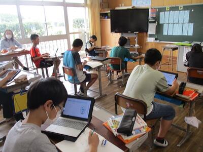 1・2年生も、先生から出された課題に集中して取り組んでいました。