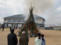 事前の協議で風など十分に配慮して実行するという共通理解をしての開催です。朝、少し早めに来るとたくさんのしめ縄などの正月飾りがすでに入れてありました。風も早朝は少し強くて心配していたのですが、予報通り微風に。