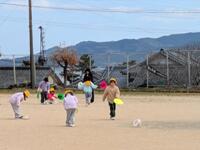 そんな寒空ですが、運動場からは歓声が!何しているのかなとのぞいてみると1年生が生活科「ふゆとなかよし」の学習中です。今日は、自分でつくった風の力で動くおもちゃで遊んでいるところでした。