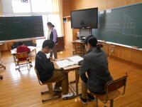 5年生は、算数。円柱と角柱の学習です。私の隣で教頭先生が学習シートをつくったり、授業の進め方を確認したり、押さえるポイントを確認したりして、いざ授業へ。
