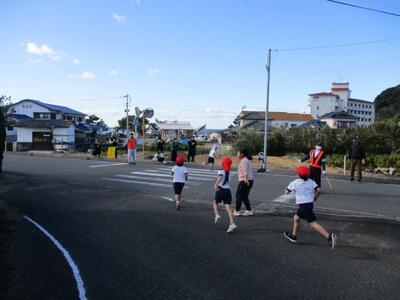 午前10時40分、最後の高学年のスタートです。高学年は、アップダウンのある3キロのコースを走ります。かなりきついコースですが、沿道の方々の声援を受け、最後まであきらめない心で全員ゴールまで走り抜きました。子供たちの応援の姿も素晴らしく、ゴール間近のランナーに「がんばれー」「あと少し」と大きな声で一生懸命応援していました。