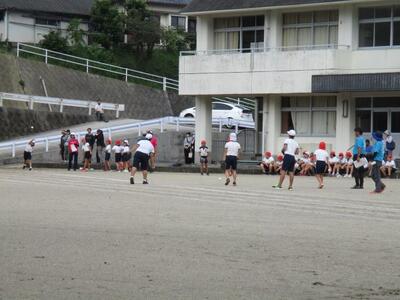 子供たちはというと、各学校それぞれに準備運動やウォーミングアップを行います。