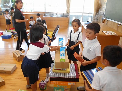 都呂々小1年2名が来校し、本校9名の子どもたちと体育や図工を学習しました。最初は緊張してぎこちなかったようですが、給食や昼休み時間をいっしょに過ごし、仲良くなりました。