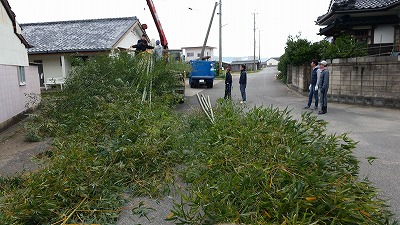 5・6年生も参加予定でしたが、午後の悪天候を考え、中止としました。したがって、運営委員の皆様のご協力で竹の切り出しから組み立てまで行いました。元袋の田中さんのご厚意で竹を切らせていただいています。この場を借りて感謝申し上げます。