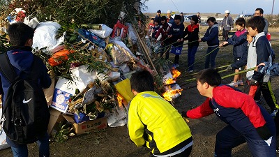雨がちらつく天候になりましたが、たくさんの方に参加していただきました。卒業した中学生も来てくれました。地域の方はお札やしめ縄などを持ち込まれています。みなさん心待ちにされているのですね。