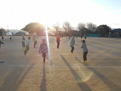 今週から2月の縄跳びグランプリに向けて朝の練習が始まりました。今年一番の寒波が来ていますが、寒さに負けず朝日を浴びながら練習を始めました。