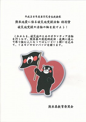 平成28年度善行児童生徒表彰 特別賞受賞!