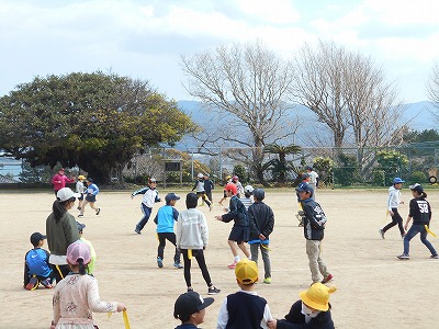 今年度最後のレクレーションでした。今日は縦割り班のかなた班対抗しっぽとり。優勝の特典は先生たちと対戦できる!子どもたちは張り切って走り回りました。