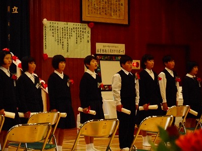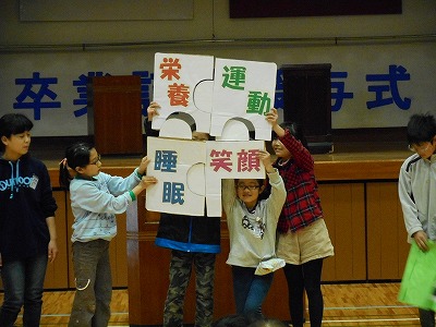 卒業式では、夢を持ち、堂々と発表する姿で、小学校6年間の成長を見せてくれました。田嶋町長様からもほめていただきました。式後は、やり終えた充実感に浸っていたようです。この1年間、下級生のめんどうをしっかり見て、学校のリーダーとして一人一人が活躍しました。ありがとう!