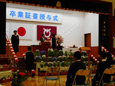 前日の雨と打って変わって、登校の時刻には晴れ間が見えました。卒業生の1年間のがんばりへのねぎらいと、卒業の祝福で太陽が顔を出しました。