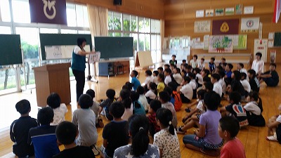 この写真は苓北支援学校の先生に来ていただいた出前授業の一コマです。