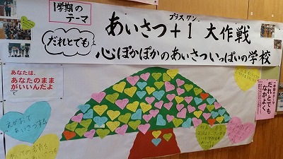 学校での掲示物。来校された時にゆっくりご覧ください。子どもたちへのメッセージがそこにあります。