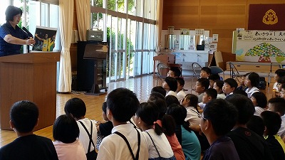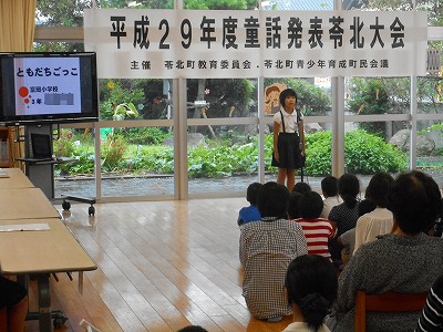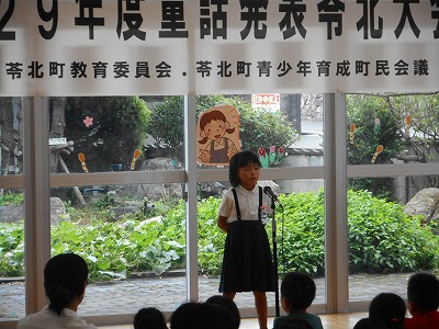 町内各校持ち回りで行われる童話発表苓北大会。今年は本校図書室で実施しました。各校代表2名、計8名で天草大会を目指します。