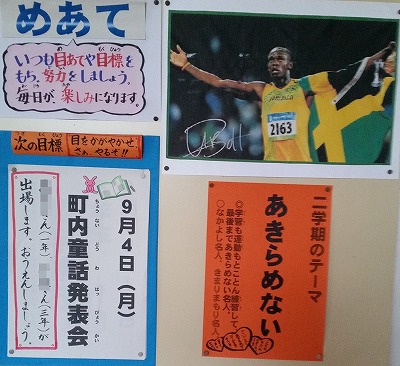 引き続き、始業式。校長先生から、世界陸上を最後に引退したのボルトの選手の話がありました。なぜ、偉大な選手になったのか?そのあきらめない心。不撓の心があったのです。