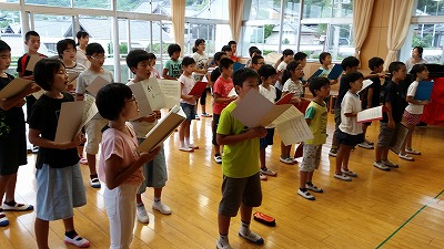 今年は4~6年生の合唱です。人数も30人以上なので歌声に厚みが出るでしょう。男の子の高音もきれいで、2階の音楽室から1階の図書室まで届いていました。