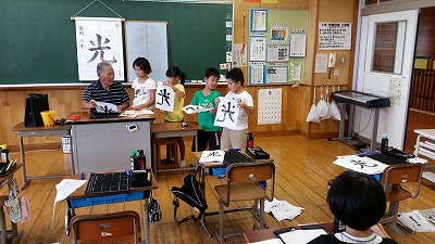 地域の先生から習字を習っています。題は文化展の課題です。今月は3年以上は2時間続きの毛筆指導を入れていただきました。指導の効果を上げるためです。