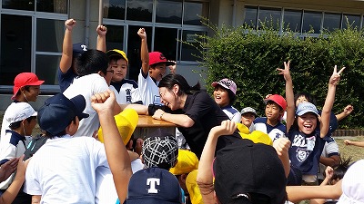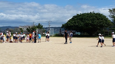 最後、若き教育実習生。全国大会にも出場するソフトテニスプレーヤー。全校児童におされ、6年生のMくんが登場。そして、なんと勝ちました。全員大盛り上がり。すぐに、子どもたちは運動場に散っていきました。