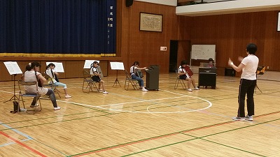 日が暮れ、周囲が静かになった体育館で演奏が響きます。